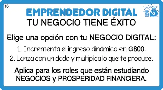 - Lanza con un dado y multiplica lo que te produce: multiplica el Ingreso Dinámico que está produciendo el NEGOCIO actualmente, por el resultado del dado para obtener el nuevo ingreso.