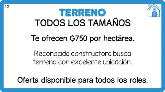 Si uno o más roles se benefician de la tarjeta de VENTA, recibirás una comisión por cada tarjeta de COMPRA de BIENES RAÍCES o NEGOCIOS sobre la que aplique. La comisión será del 1% del precio total de la venta o beneficio, teniendo en cuenta que el valor mínimo de comisión a pagar es de G1.000.