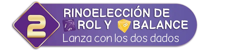 El resultado del dado morado determinará tu número de rol, mientras que el del dado amarillo será tu número de balance.